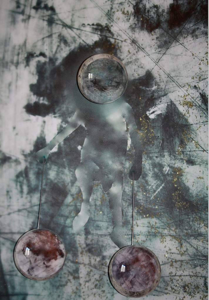 Collage polymatérique sur plexiglas. 22 × 32 × 3 cm.